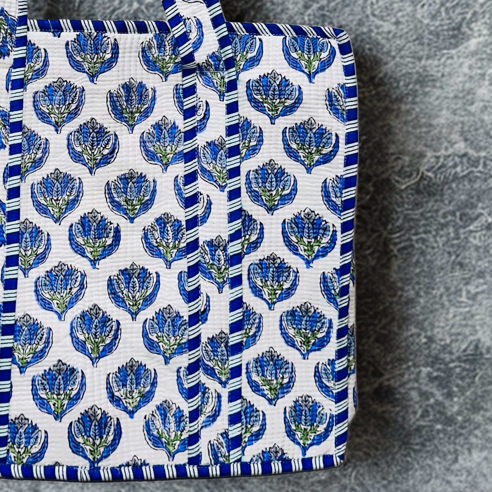 Crafted with precision, these Blue Floral Hand-Printed Tote Bags combine aesthetic appeal with functional design. Featuring vibrant hand-printed floral patterns on durable fabric, each tote includes a secure zipper closure to protect your essentials. Ideal for daily use, the ergonomic handles ensure comfort, while the spacious interior allows organised storage. Perfect for those seeking a stylish yet practical accessory that reflects artisanal quality and attention to detail.