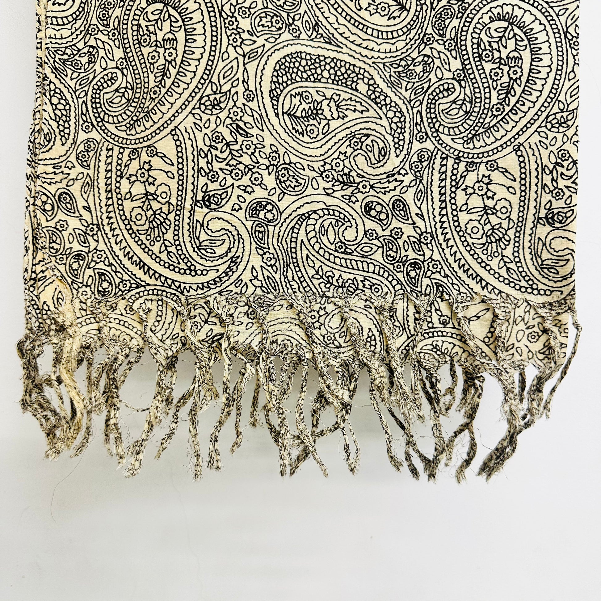 Elevate your accessory collection with this expertly crafted paisley patterned Cotton scarf, featuring delicate tassels for added texture and movement. The intricate paisley design showcases timeless elegance, while the soft fabric ensures comfortable wear throughout the day. Perfect for layering, this scarf adds a sophisticated touch to both casual and formal ensembles.