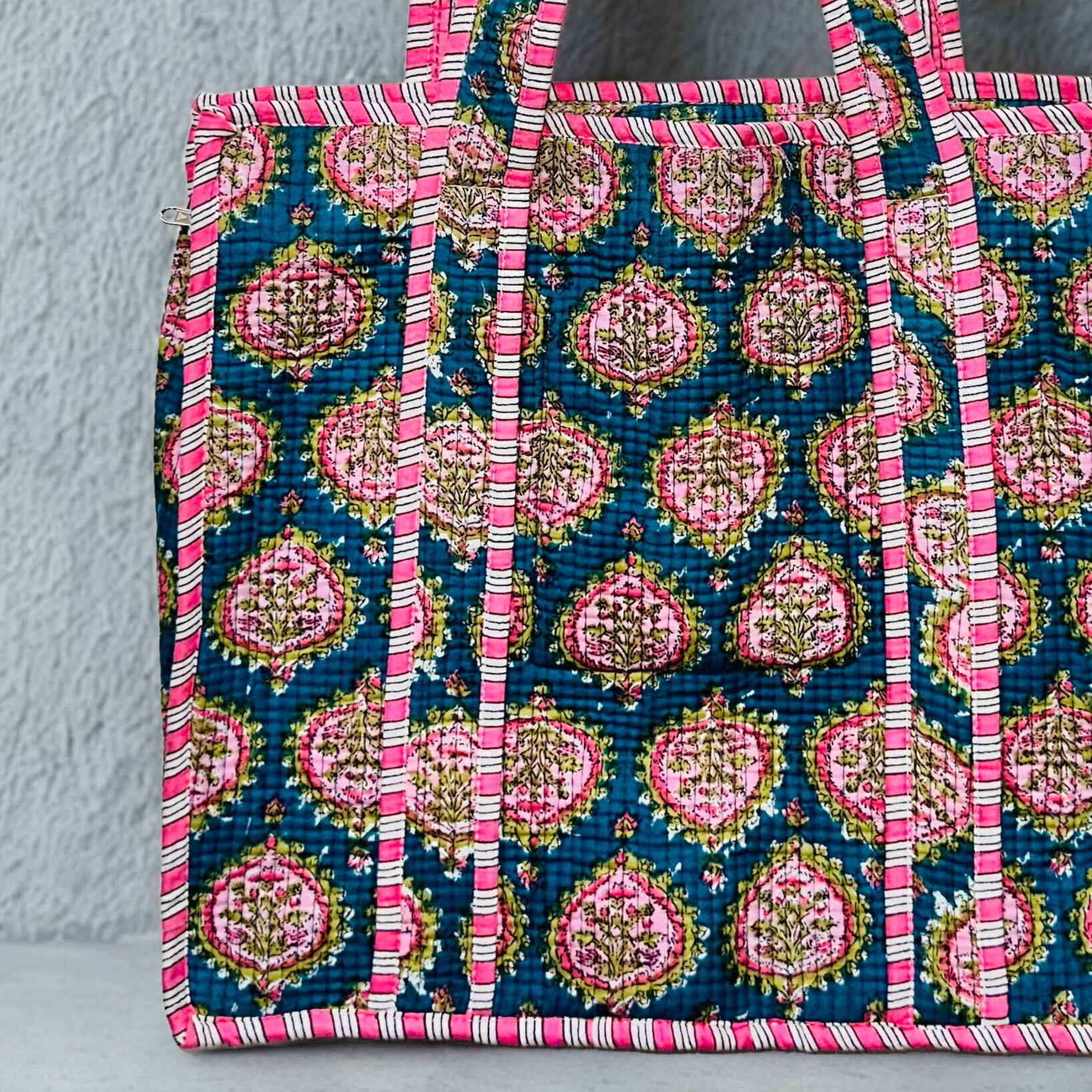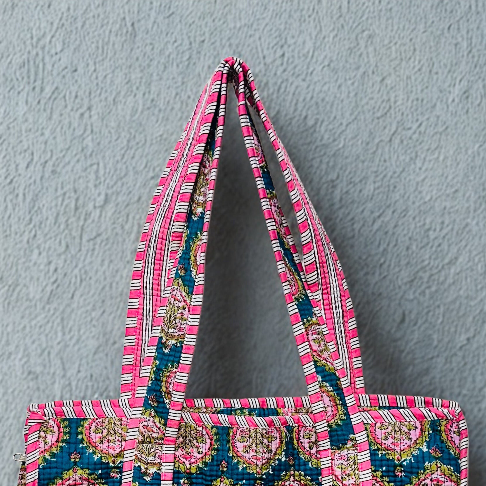 Elevate your daily carry with these Pink Floral Pattern Hand-Printed Tote Bags featuring a secure zipper closure. Crafted using traditional hand-printing techniques, each bag offers a unique floral design that combines artistry with functionality. The zipper ensures your essentials stay safely inside, making it ideal for work, errands, or casual outings. Durable yet lightweight, these totes provide a stylish and practical solution for organizing your belongings with expert craftsmanship.
