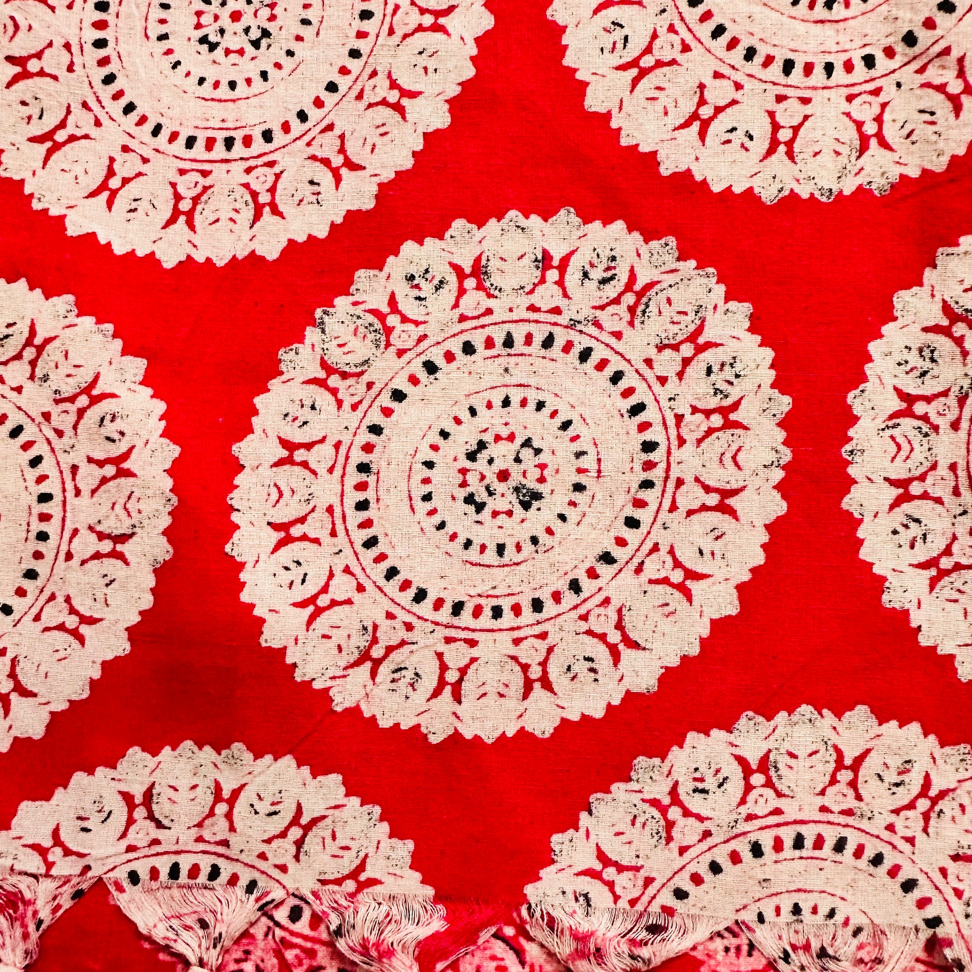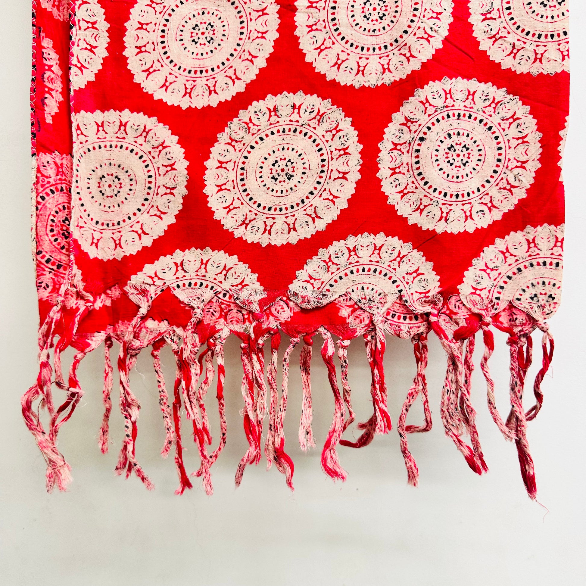 Red Cotton scarf with white circular patterns